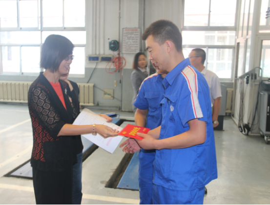 (集團群團工作部 訊 張俊福/文攝)8月30日-31日,集團黨委委員、副總經理劉玲同志一行4人,分別赴物產汽貿公司、物產工投公司,代表集團黨委宣讀了《關于對參加全省青年職工職業技能大賽獲獎選手獎勵的通知》(青物黨〔2018〕127號),并為獲獎選手石學林、張懷軍、陳志財頒發了獎金。